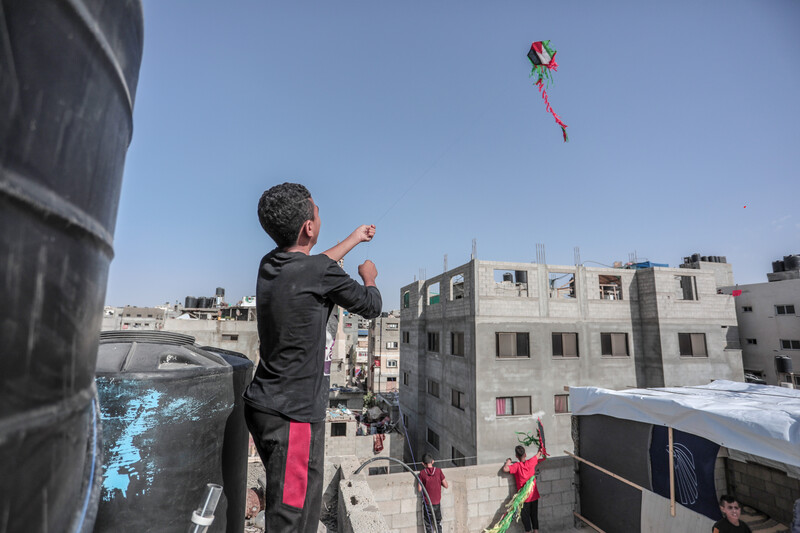 Palestinian children fly kites to mark Naksa Day in Gaza City on 4 June. The annual commemoration marks the anniversary of Israel’s occupation of the West Bank and Gaza Strip in 1967.