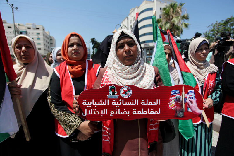 Palestinian youth take part in an event dubbed “Young Women’s Campaign to Boycott Israeli Products” in Gaza City on 16 June.