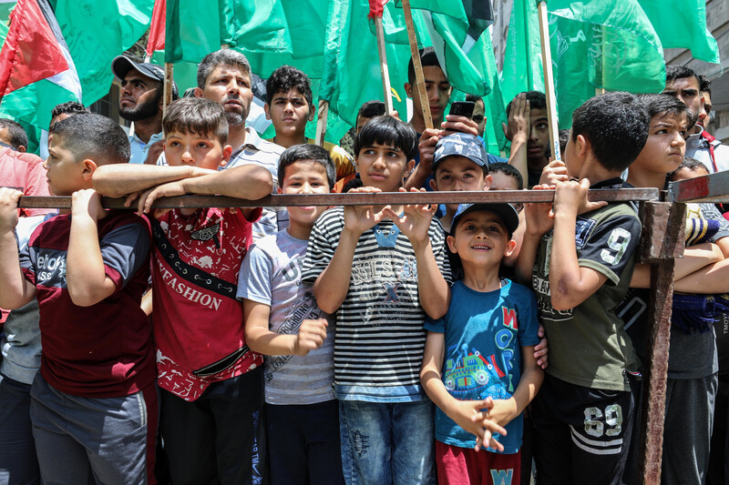Hamas supporters rally against Israel’s annexation plans in Jabaliya refugee camp, northern Gaza Strip, on 19 June.