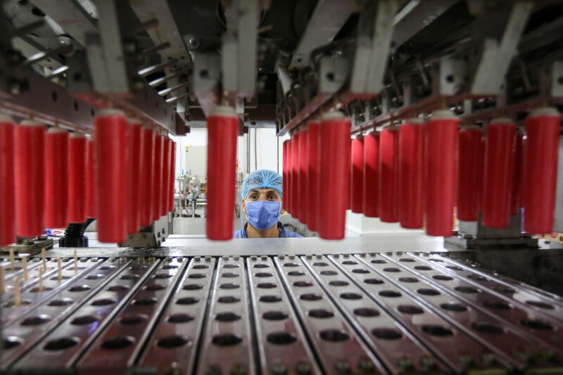 Palestinian employees produce frozen treats at a Gaza City factory on 22 June.