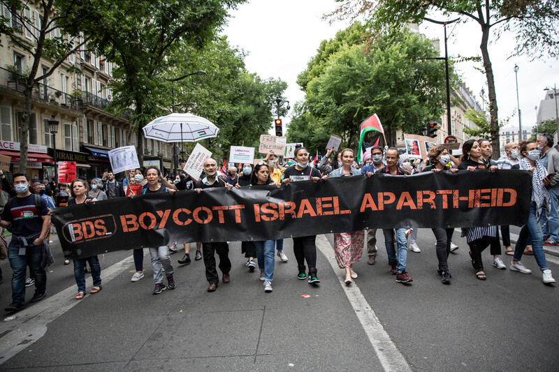 Demonstrators protest against the Israeli occupation and West Bank annexation plans in Paris, France, on 27 June.