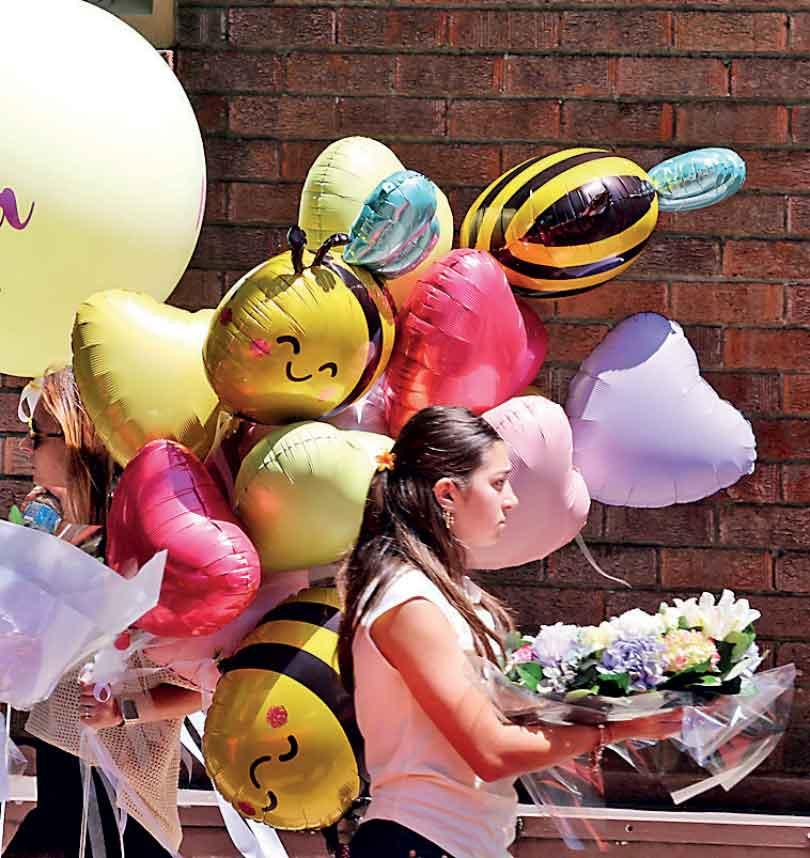 People carry balloons as they arrive for the funeral of 10-year-old Matilda, who was killed in the December 14 Bondi Beach shooting attack, in Sydney on December 18, 2025. AFP