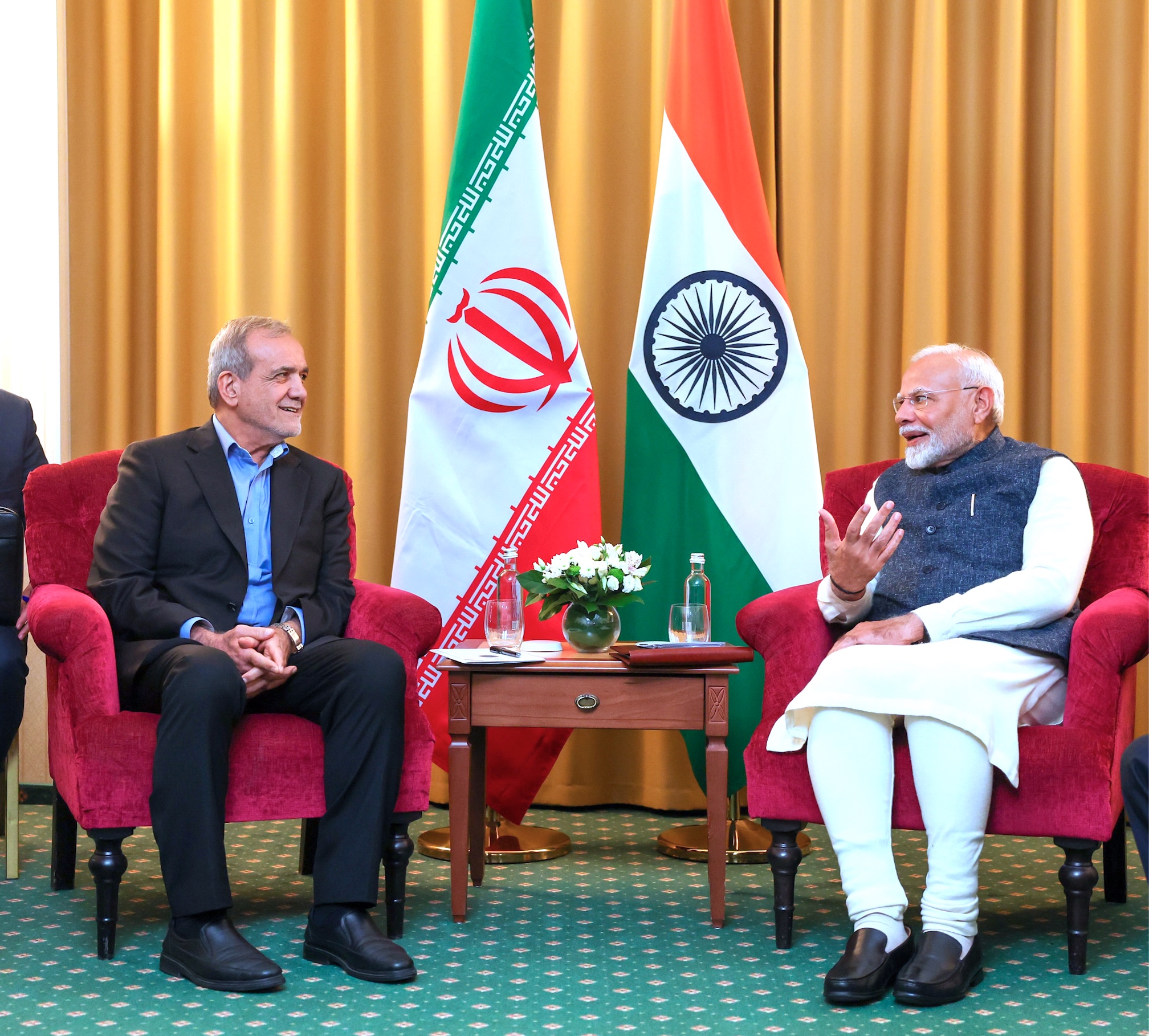 Iranian President Masoud Pezeshkian meeting with Modi at the 16th BRICS summit in Kazan, Russia, Oct. 22, 2024. (Prime Minister’s Office/Government of India/Wikimedia Commons/GODL-India)