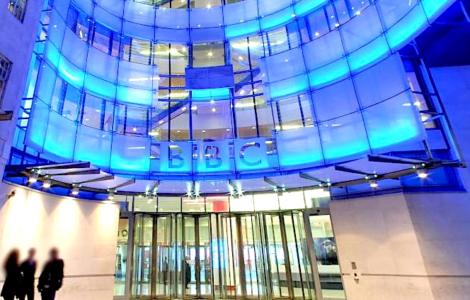 BBC Broadcasting Building entrance at night, 2013. (Zizzu02/Wikimedia Commons/CC BY-SA 3.0)